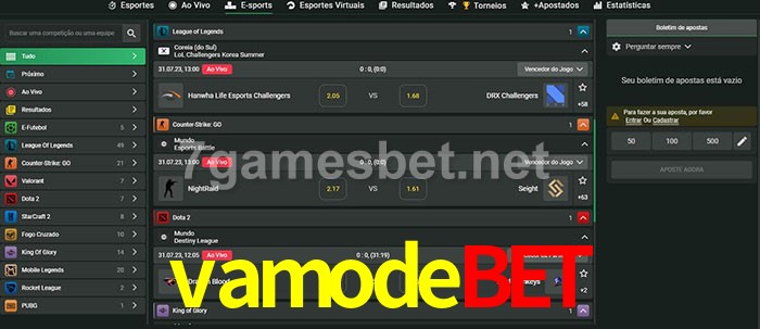 O vamodebet oferece uma grande seleção de opções de apostas em e-sports com probabilidades competitivas